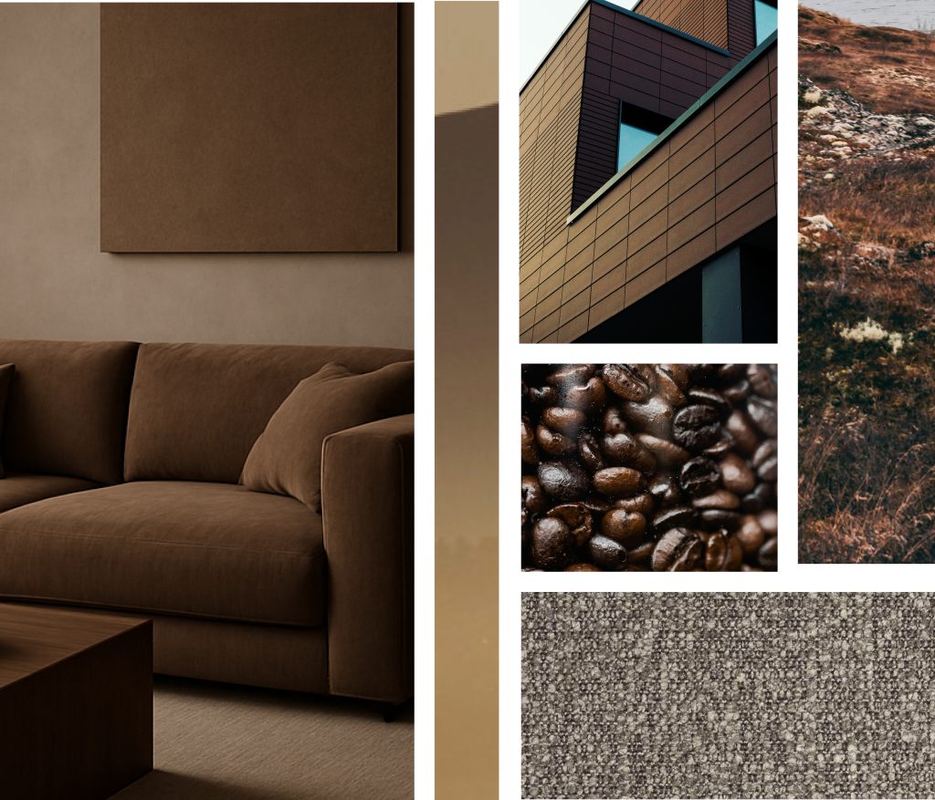 Mocha Moments blends soft brown, taupe, liver and beige tones into a calm, characterful palette. Rooted in natural materials, these colours